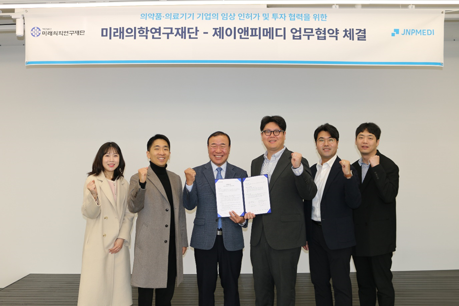 Under the term of this agreement, two organizations will work together in several key areas including, △ regulatory approvals and clinical trials for pharmaceuticals and medical devices, △ support for clinical development and commercialization, and △ joint investment reviews and strategic partnerships with FMI’s affiliated companies. In particular, the FMI will actively facilitate collaboration between its partner companies and JNPMEDI. Meanwhile, JNPMEDI plans to contribute to the broader domestic bio-ecosystem through regulatory consulting, clinical trial management, and investment reviews.