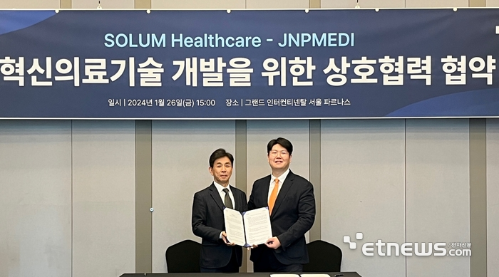 Byungjoo Kim, CEO of SoluM Healthcare (left), Kwunho Jeong, CEO of JNPMEDI (right)